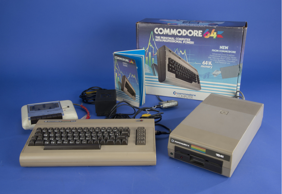 Spoločnosť Commodore bola najväčšou konkurenciou Apple. Jej počítač Commodore 64 (začal sa predávať v roku 1982) bol od začiatku prezentovaný ako zariadenie pre hráčov. Mal zabudovaný čip s názvom SID (Sound Interface Device), vytvorený Robertom Yannesom v roku 1981. Oproti predošlým PSG čipom každý z tónov mohol využívať viacero typov zvukových vĺn (pílovú, trojuholníkovú, variabilnú pulznú, šumovú), tóny mohli byť modulované rôznymi analógovými filtrami a tromi kruhovými modulátormi (ring modulator), pričom obsahoval ADSR na každý kanál zvlášť. Pôsobil tak ako plnohodnotný syntetizátor (obsahoval totiž súčiastky, ktoré boli v reálnych analógových syntetizátoroch, ako napríklad Mini Moog alebo Roland Jupiter 8) a pre mnohých mladých programátorov a hudobných skladateľov bol vstupnou bránou do sveta komponovania hudby. Obsahoval dokonca modulátor náhodných hodnôt, využitý napríklad v hre Times of Lore (1988, MicroProse) tak, že skladby v tejto hre náhodne prehrávali rôzne sekvencie. Hudba preto zaberala veľmi málo miesta.